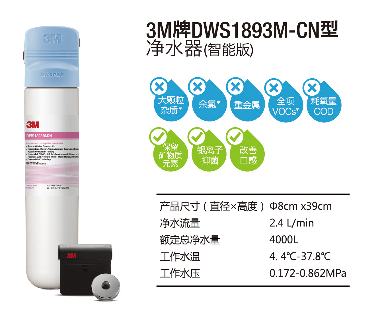 采用3M BlackMagic(黑色奇跡)活性炭棒技術,可有效去除水中可能存在的鉛、汞、砷、鎘等重金屬,全面呵護母嬰人群